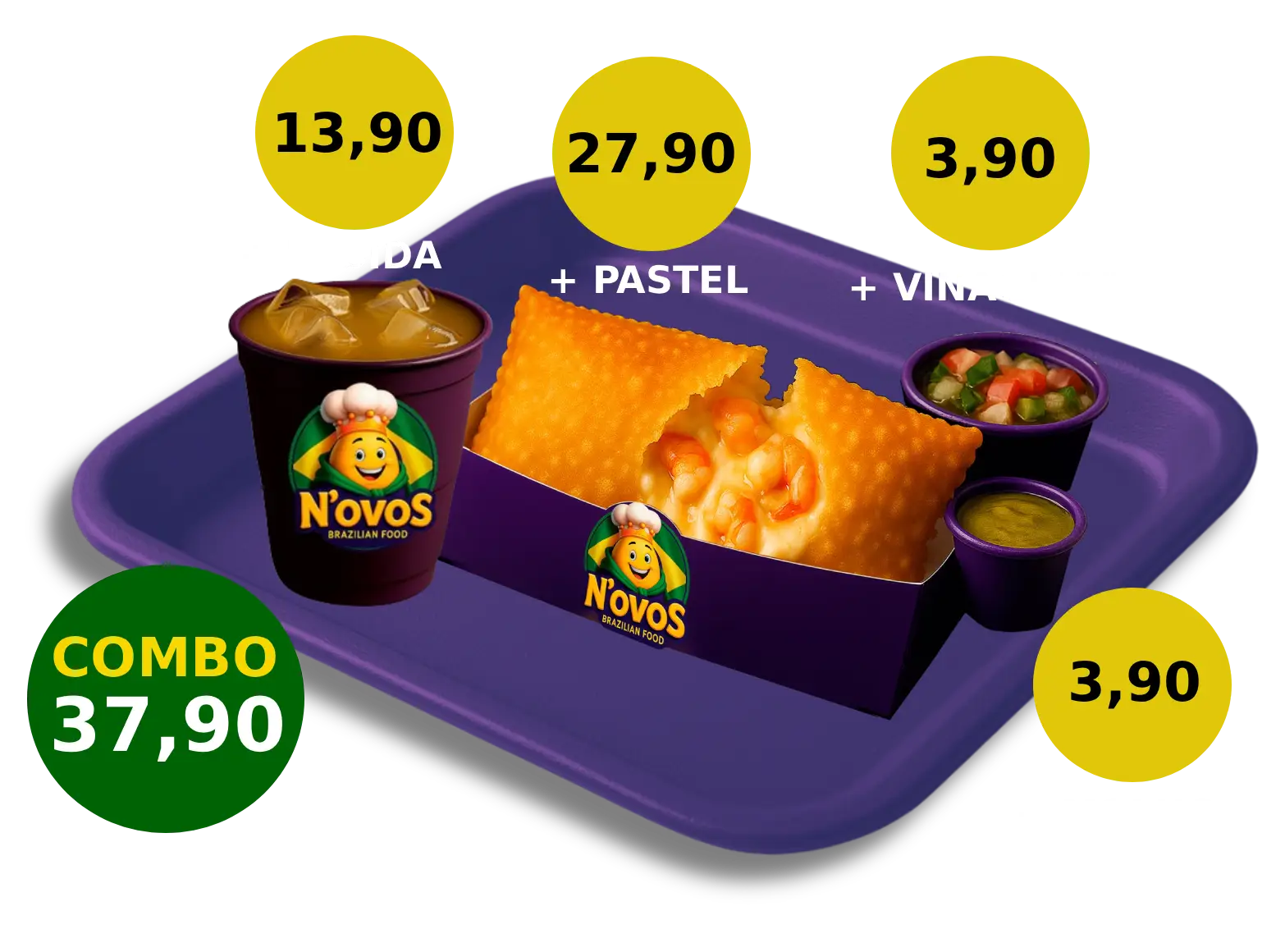 Acompanha mandioca frita crocante, molho e bebida de 400ml
